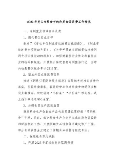 / 【七哥公文】2024年:2023年度X市粮食节约和反食品浪费工作情况+更多免费公文+VX:QiGeGongWen2024