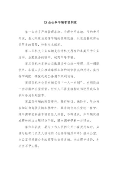 【七哥公文】2024年:XX县公务车辆管理制度+更多免费公文+VX:QiGeGongWen2024