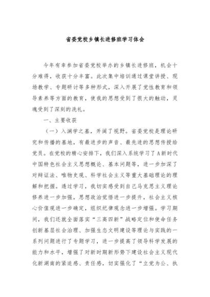 / 【七哥公文】2024年:省委党校乡镇长进修班学习体会+更多免费公文+VX:QiGeGongWen2024