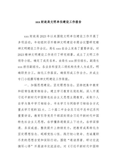 / 【七哥公文】2024年:xxx财政局文明单位建设工作报告+更多免费公文+VX:QiGeGongWen2024