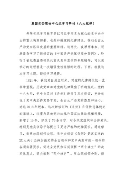 【七哥公文】2024年:集团党委理论中心组学习研讨(六大纪律)+更多免费公文+VX:QiGeGongWen2024