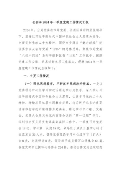 / 【七哥公文】2024年:公安局2024年一季度党建工作情况汇报+更多免费公文+VX:QiGeGongWen2024