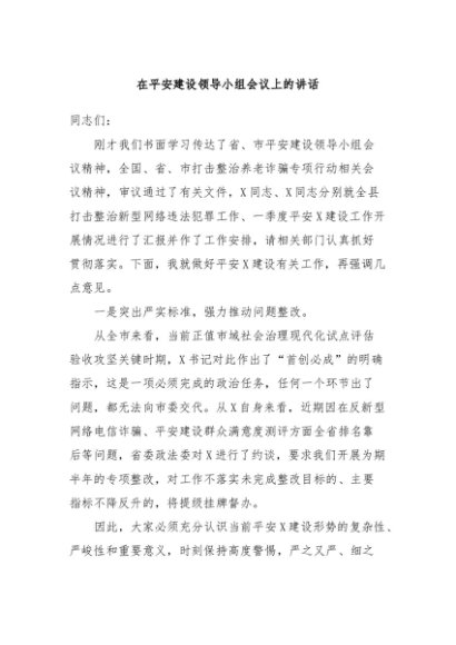 / 【七哥公文】2024年:在平安建设领导小组会议上的讲话+更多免费公文+VX:QiGeGongWen2024