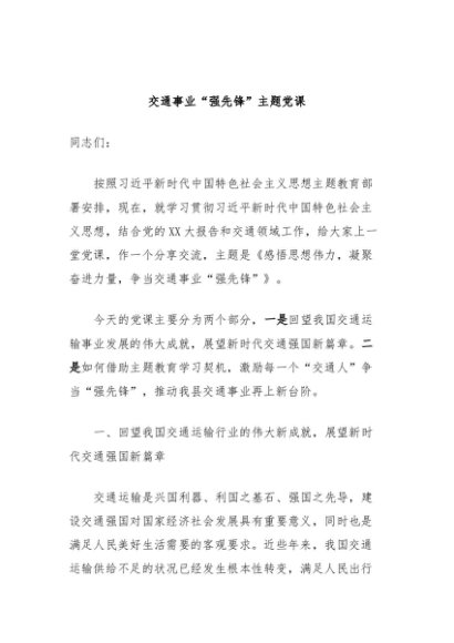 / 【七哥公文】2024年:交通事业“强先锋”主题党课+更多免费公文+VX:QiGeGongWen2024