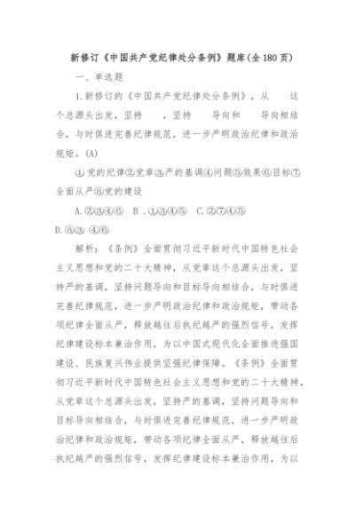 【七哥公文】2024年:新修订《中国共产党纪律处分条例》题库(全180页)+更多免费公文+VX:QiGeGongWen2024