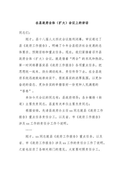 / 【七哥公文】2024年:在县政府全体(扩大)会议上的讲话+更多免费公文+VX:QiGeGongWen2024