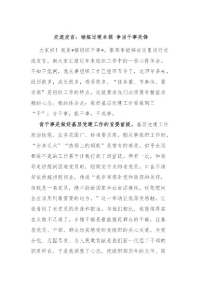 / 【七哥公文】2024年:交流发言:锤炼过硬本领 争当干事先锋+更多免费公文+VX:QiGeGongWen2024