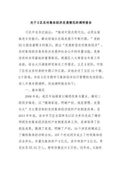 / 【七哥公文】2024年:关于X区农村集体经济发展情况的调研报告+更多免费公文+VX:QiGeGongWen2024