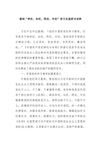 / 【七哥公文】2024年:做到“学纪、知纪、明纪、守纪”学习交流研讨材料+更多免费公文+VX:QiGeGongWen2024
