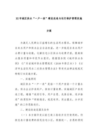 【七哥公文】2024年:XX市城区供水“一户一表”建设改造与运行维护管理实施方案+更多免费公文+VX:QiGeGongWen2024