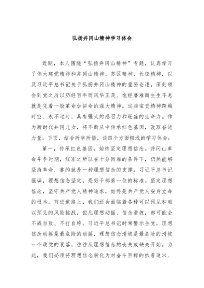 / 【七哥公文】2024年:弘扬井冈山精神学习体会+更多免费公文+VX:QiGeGongWen2024