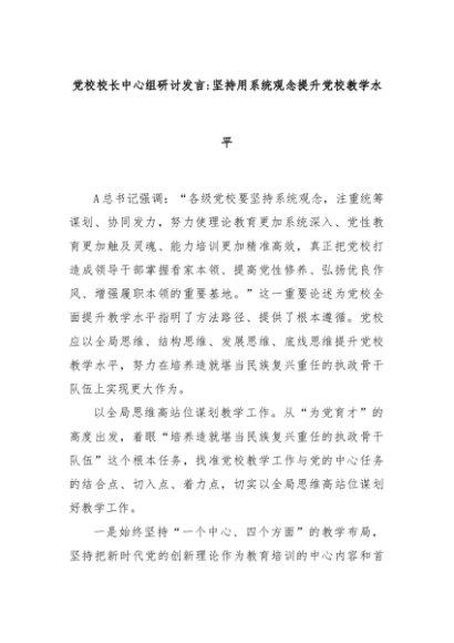 【七哥公文】2024年:党校校长中心组研讨发言坚持用系统观念提升党校教学水平+更多免费公文+VX:QiGeGongWen2024