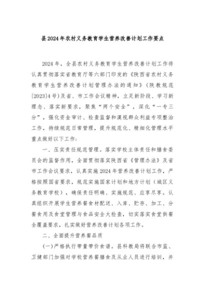 【七哥公文】2024年:县2024年农村义务教育学生营养改善计划工作要点+更多免费公文+VX:QiGeGongWen2024