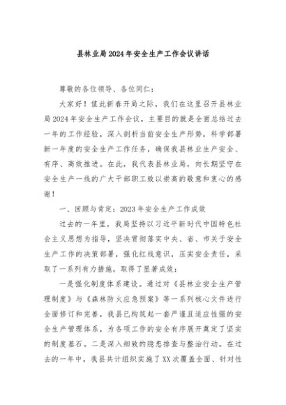 / 【七哥公文】2024年:县林业局2024年安全生产工作会议讲话+更多免费公文+VX:QiGeGongWen2024