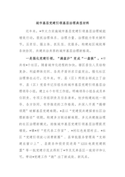 / 【七哥公文】2024年:城市基层党建引领基层治理典型材料+更多免费公文+VX:QiGeGongWen2024