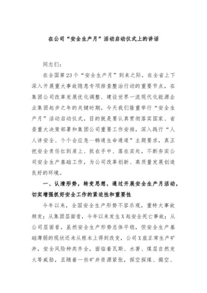 / 【七哥公文】2024年:在公司“安全生产月”活动启动仪式上的讲话+更多免费公文+VX:QiGeGongWen2024