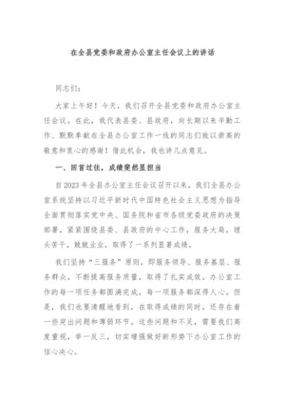 / 【七哥公文】2024年:在全县党委和政府办公室主任会议上的讲话+更多免费公文+VX:QiGeGongWen2024