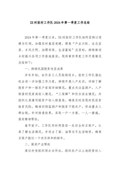 / 【七哥公文】2024年:XX村驻村工作队2024年第一季度工作总结+更多免费公文+VX:QiGeGongWen2024