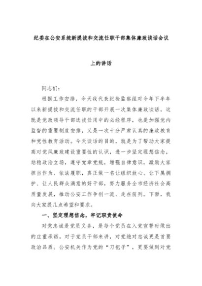【七哥公文】2024年:纪委在公安系统新提拔和交流任职干部集体廉政谈话会议上的讲话+更多免费公文+VX:QiGeGongWen2024