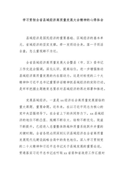 / 【七哥公文】2024年:学习贯彻全省县域经济高质量发展大会精神的心得体会+更多免费公文+VX:QiGeGongWen2024