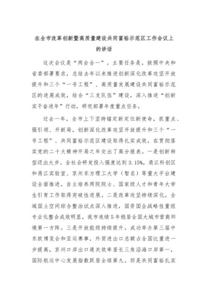 【七哥公文】2024年:在全市改革创新暨高质量建设共同富裕示范区工作会议上的讲话+更多免费公文+VX:QiGeGongWen2024
