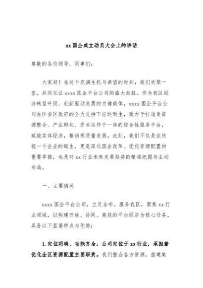 / 【七哥公文】2024年:xx国企成立动员大会上的讲话+更多免费公文+VX:QiGeGongWen2024