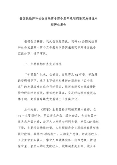 【七哥公文】2024年:县国民经济和社会发展第十四个五年规划纲要实施情况中期评估报告+更多免费公文+VX:QiGeGongWen2024