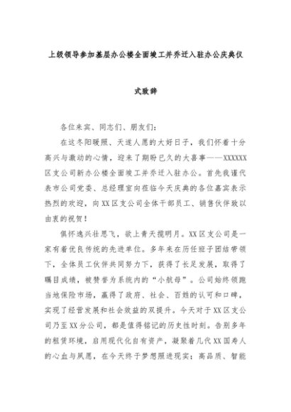 【七哥公文】2024年:上级领导参加基层办公楼全面竣工并乔迁入驻办公庆典仪式致辞+更多免费公文+VX:QiGeGongWen2024