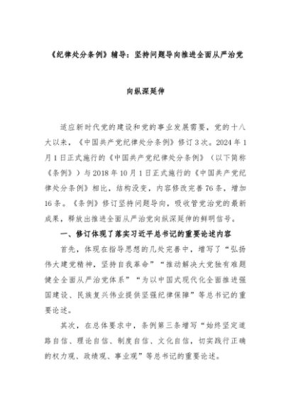 【七哥公文】2024年:《纪律处分条例》辅导:坚持问题导向推进全面从严治党向纵深延伸+更多免费公文+VX:QiGeGongWen2024