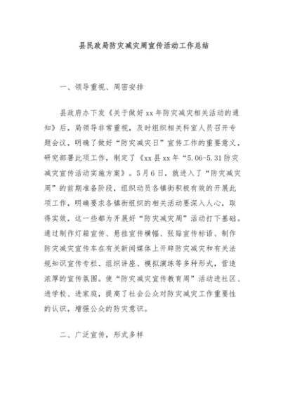 / 【七哥公文】2024年:县民政局防灾减灾周宣传活动工作总结+更多免费公文+VX:QiGeGongWen2024