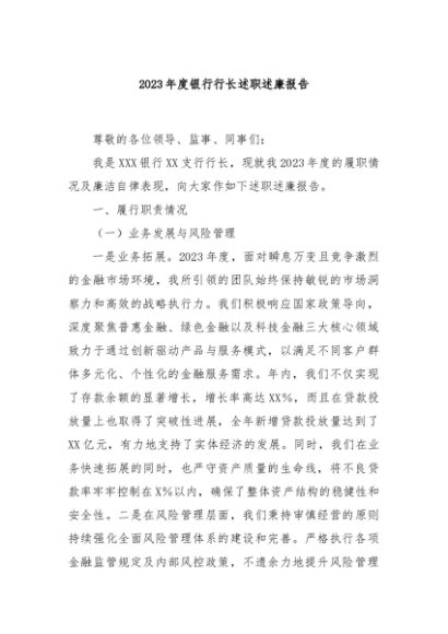 / 【七哥公文】2024年:2023年度银行行长述职述廉报告+更多免费公文+VX:QiGeGongWen2024