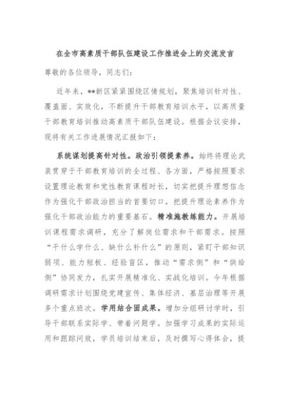 / 【七哥公文】2024年:在全市高素质干部队伍建设工作推进会上的交流发言+更多免费公文+VX:QiGeGongWen2024