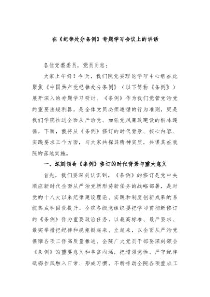 / 【七哥公文】2024年:在《纪律处分条例》专题学习会议上的讲话+更多免费公文+VX:QiGeGongWen2024