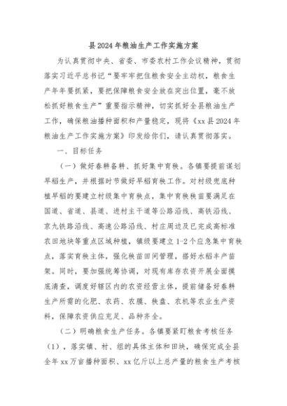 / 【七哥公文】2024年:县2024年粮油生产工作实施方案+更多免费公文+VX:QiGeGongWen2024