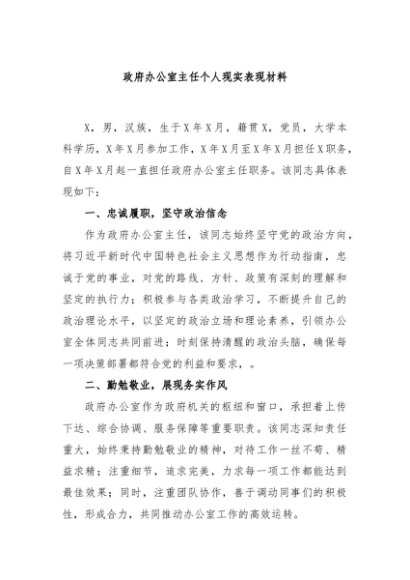 / 【七哥公文】2024年:政府办公室主任个人现实表现材料+更多免费公文+VX:QiGeGongWen2024