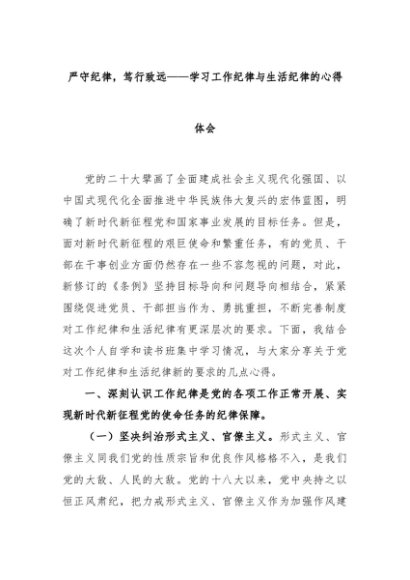 【七哥公文】2024年:严守纪律,笃行致远——学习工作纪律与生活纪律的心得体会+更多免费公文+VX:QiGeGongWen2024