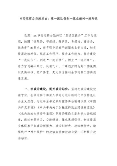 【七哥公文】2024年:市委巡察办交流发言:建一流队伍创一流业绩树一流形象+更多免费公文+VX:QiGeGongWen2024