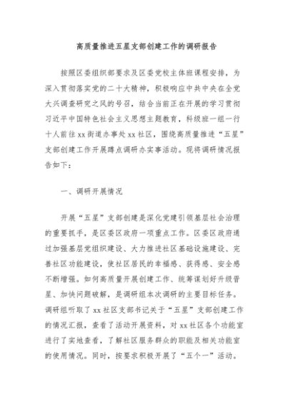 【七哥公文】2024年:高质量推进五星支部创建工作的调研报告+更多免费公文+VX:QiGeGongWen2024