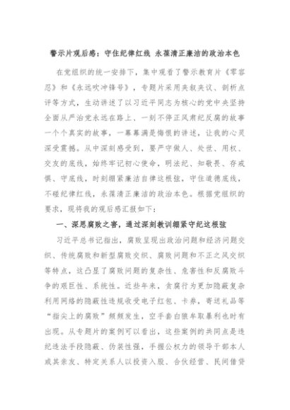 【七哥公文】2024年:警示片观后感:守住纪律红线 永葆清正廉洁的政治本色+更多免费公文+VX:QiGeGongWen2024