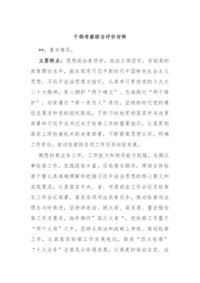 / 【七哥公文】2024年:干部考察综合评价材料+更多免费公文+VX:QiGeGongWen2024