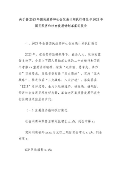 【七哥公文】2024年:关于县2023年国民经济和社会发展计划执行情况与2024年国民经济和社会发展计划草案的报告+更多免费公文+VX:QiGeGongWen2024