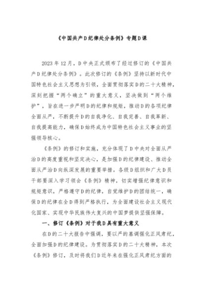 【七哥公文】2024年:《中国共产D纪律处分条例》专题党课+更多免费公文+VX:QiGeGongWen2024