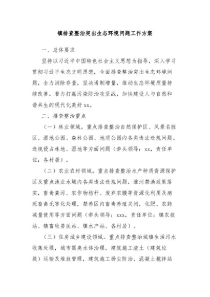 / 【七哥公文】2024年:镇排查整治突出生态环境问题工作方案+更多免费公文+VX:QiGeGongWen2024