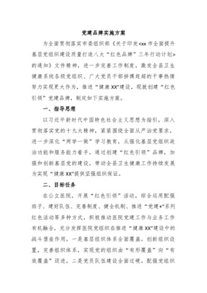 【七哥公文】2024年:党建品牌实施方案+更多免费公文+VX:QiGeGongWen2024