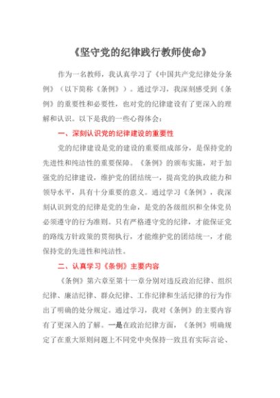 / 【七哥公文】2024年:某中学教师学习《中国共产党纪律处分条例》心得体会+更多免费公文+VX:QiGeGongWen2024