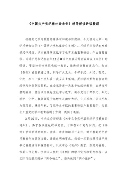 【七哥公文】2024年:《中国共产党纪律处分条例》辅导解读讲话提纲 (1)+更多免费公文+VX:QiGeGongWen2024