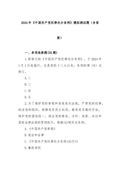 【七哥公文】2024年:2024年《中国共产党纪律处分条例》模拟测试题(含答案)+更多免费公文+VX:QiGeGongWen2024