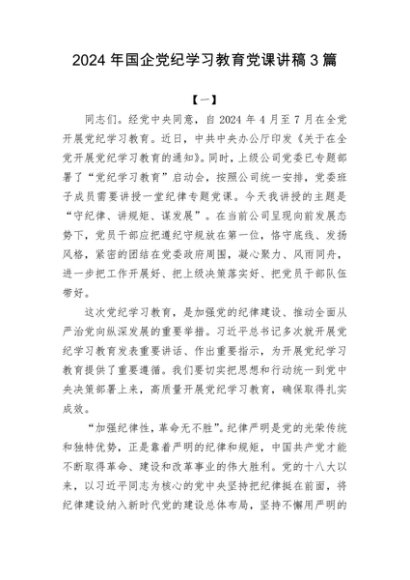 / 【七哥公文】2024年:3篇2024年国企党纪学习教育党课讲稿+更多免费公文+VX:QiGeGongWen2024