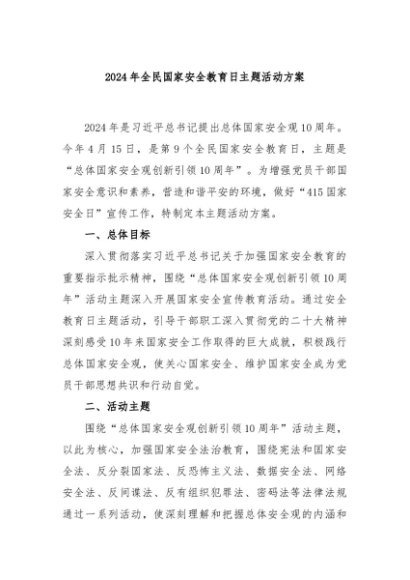 / 【七哥公文】2024年:2024年全民国家安全教育日主题活动方案+更多免费公文+VX:QiGeGongWen2024