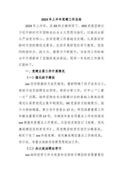 / 【七哥公文】2024年:2024年上半年党建工作总结+更多免费公文+VX:QiGeGongWen2024